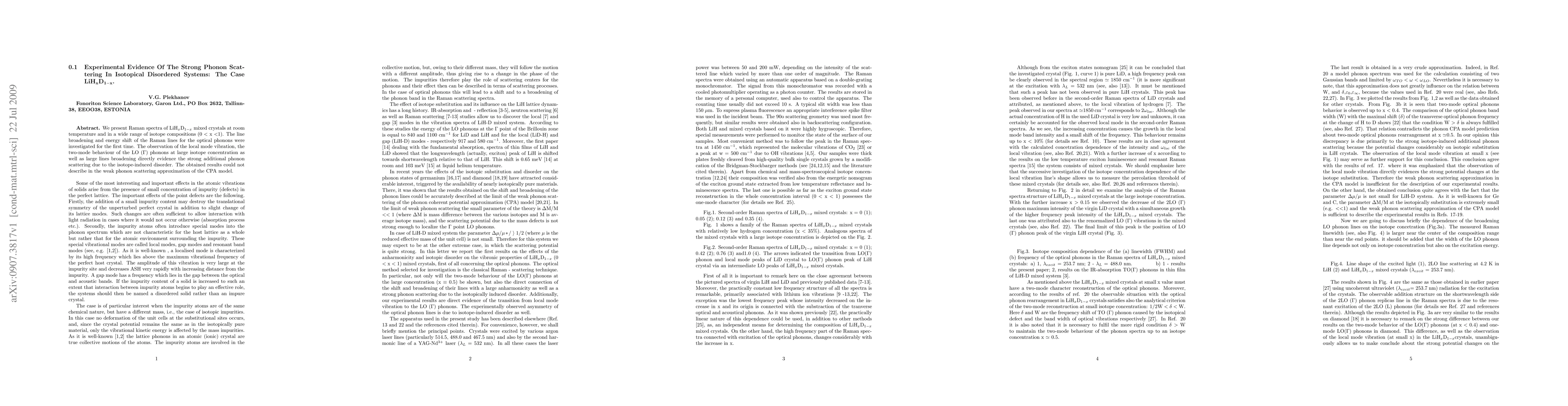 The observation of the local - mode vibration, the two - mode behavior of the LO phonons at large isotope concentration, as well as large line broadening in LIH - D mixed crystals directly evidence strong additional phonon scattering due to the isotope - induced disorder.