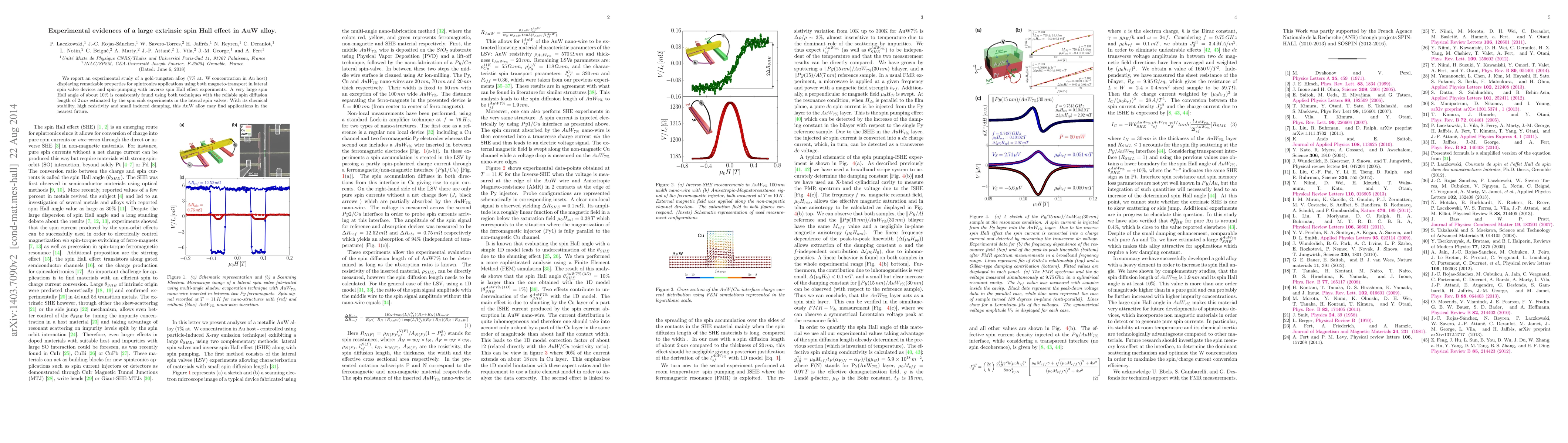 We report an experimental study of a gold-tungsten alloy (7% at. W concentration in Au host) displaying remarkable properties for spintronics applications using both magneto-transport in lateral spin valve devices and spin-pumping with inverse spin Hall effect experiments. A very large spin Hall angle of about 10% is consistently found using both techniques with the reliable spin diffusion length of 2 nm estimated by the spin sink experiments in the lateral spin valves. With its chemical stability, high resistivity and small induced damping, this AuW alloy may find applications in the nearest future.