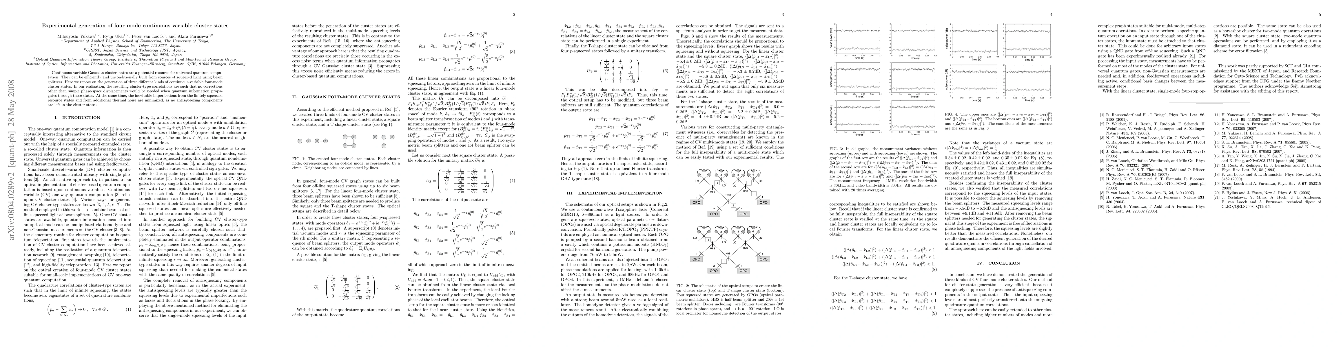 The research used a four-mode cluster state generation method with beamsplitters to cancel antisqueezing components.