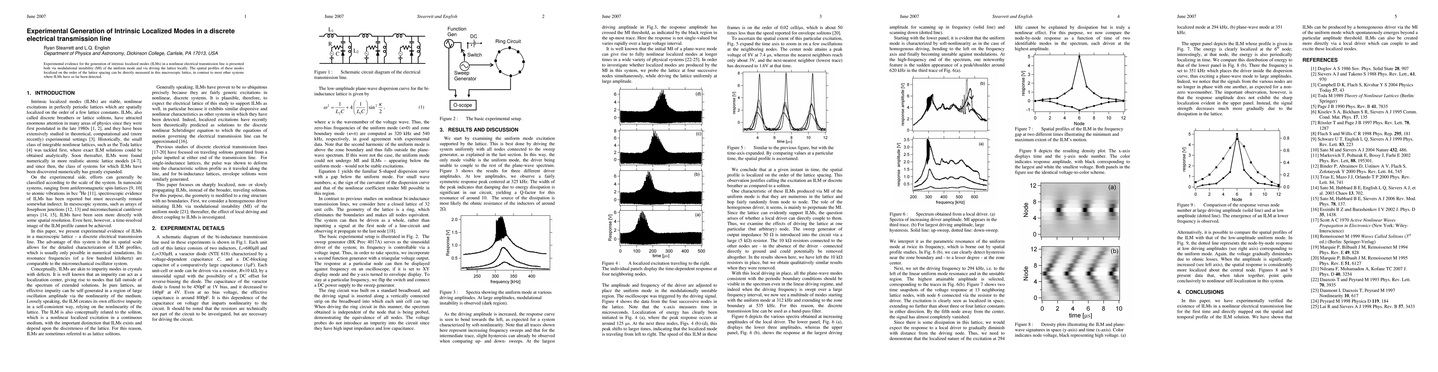 This paper presents experimental evidence for generating intrinsic localized modes (ILMs) in a nonlinear electrical transmission line through modulational instability and local driving, with measurable spatial profiles on the order of the lattice spacing. This macroscopic system allows for direct observation of ILMs.