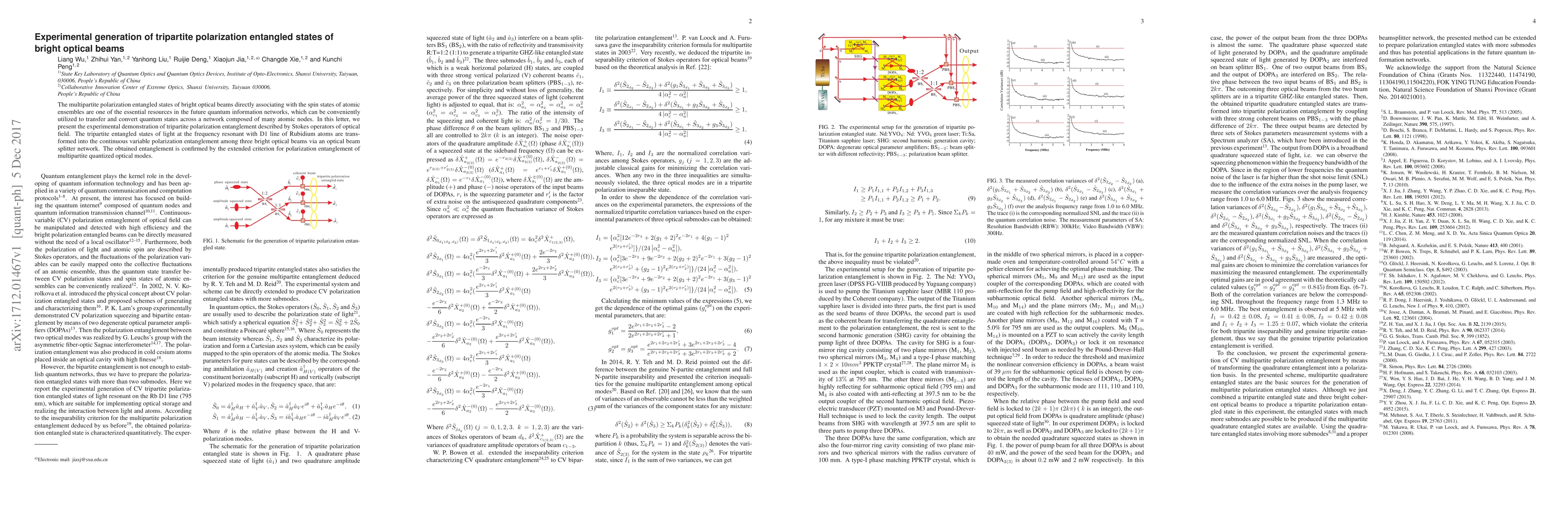 This paper demonstrates the experimental generation of tripartite polarization entangled states of bright optical beams, transforming them into continuous variable polarization entanglement via an optical beam splitter network. The entanglement is verified using an extended criterion for multipartite quantized optical modes.