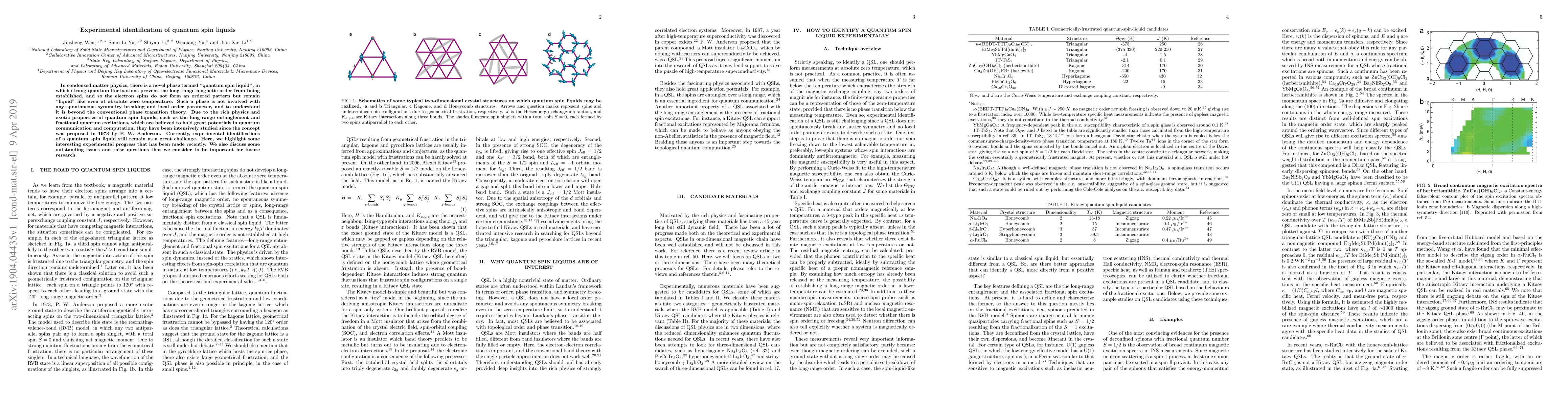 In condensed matter physics, there is a novel phase termed "quantum spin liquid", in which strong quantum fluctuations prevent the long-range magnetic order from being established, and so the electron spins do not form an ordered pattern but remain "liquid" like even at absolute zero temperature. Such a phase is not involved with any spontaneous symmetry breaking and local order parameter, and to understand it is beyond the conventional phase transition theory. Due to the rich physics and exotic properties of quantum spin liquids, such as the long-range entanglement and fractional quantum excitations, which are believed to hold great potentials in quantum communication and computation, they have been intensively studied since the concept was proposed in 1973 by P. W. Anderson. Currently, experimental identifications of a quantum spin liquid still remain as a great challenge. Here, we highlight some interesting experimental progress that has been made recently. We also discuss some outstanding issues and raise questions that we consider to be important for future research.