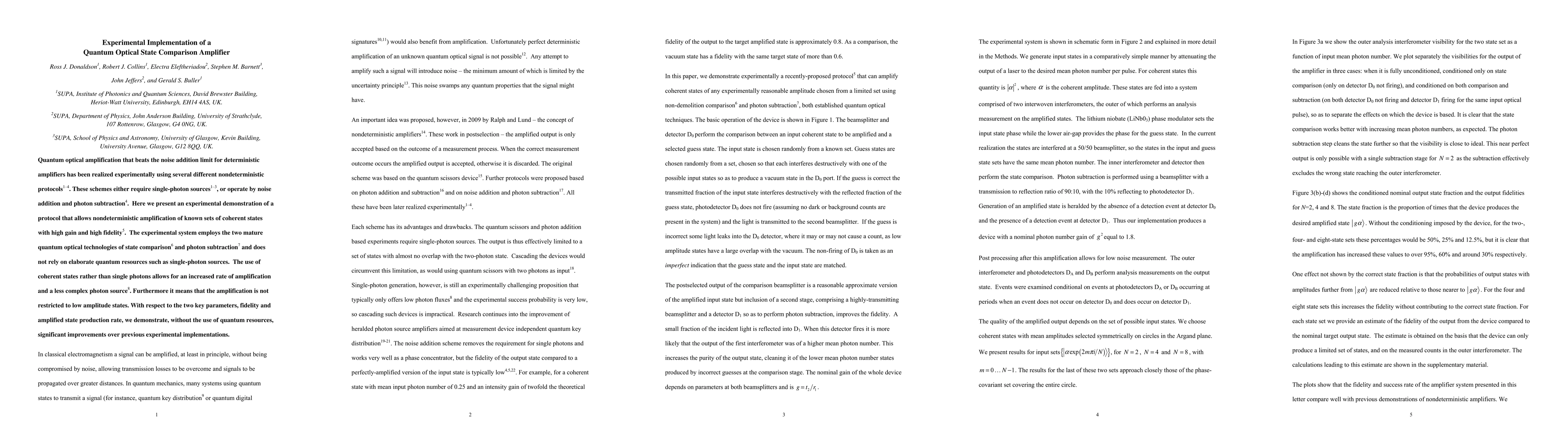 Researchers have successfully demonstrated a quantum optical state comparison amplifier that outperforms previous implementations in fidelity and amplified state production rate, using coherent states instead of single photons.