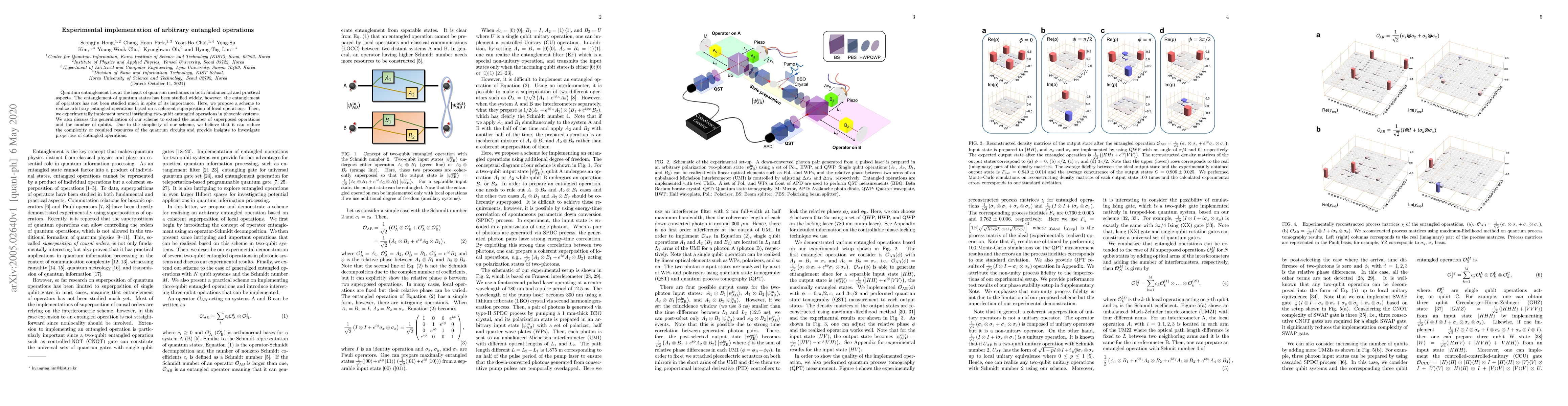 This paper proposes and experimentally implements a scheme for realizing arbitrary entangled operations using a coherent superposition of local operations in photonic systems. The simplicity of the scheme may reduce complexity in quantum circuits and provide insights into entangled operations.