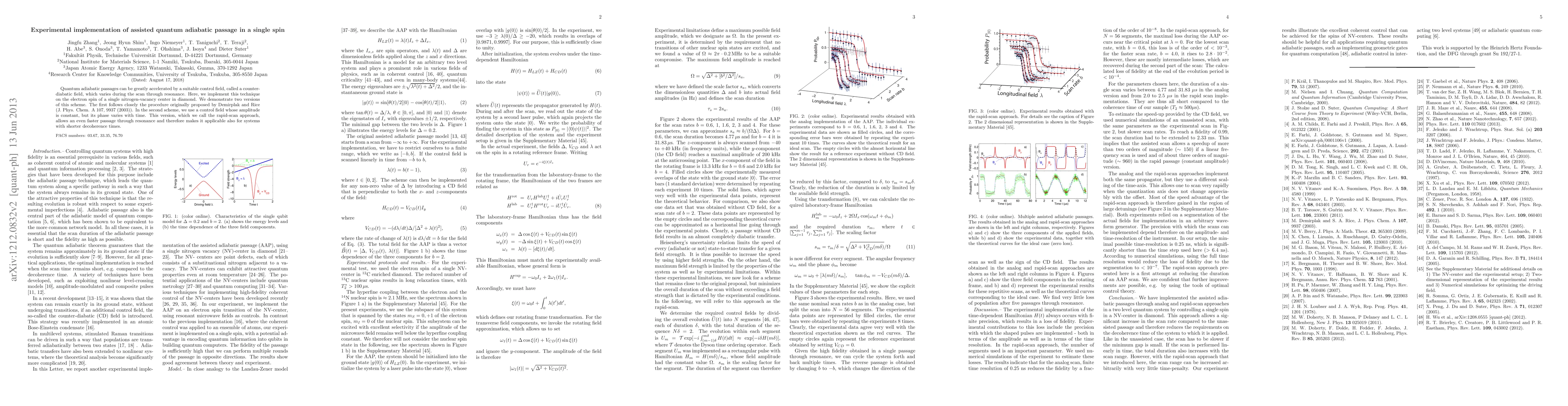This paper experimentally implements assisted quantum adiabatic passage in a single nitrogen-vacancy center's electron spin using a counter-diabatic field. It demonstrates two versions: one following the original Demirplak and Rice method, and a faster rapid-scan approach with a constant amplitude but time-varying phase control field.