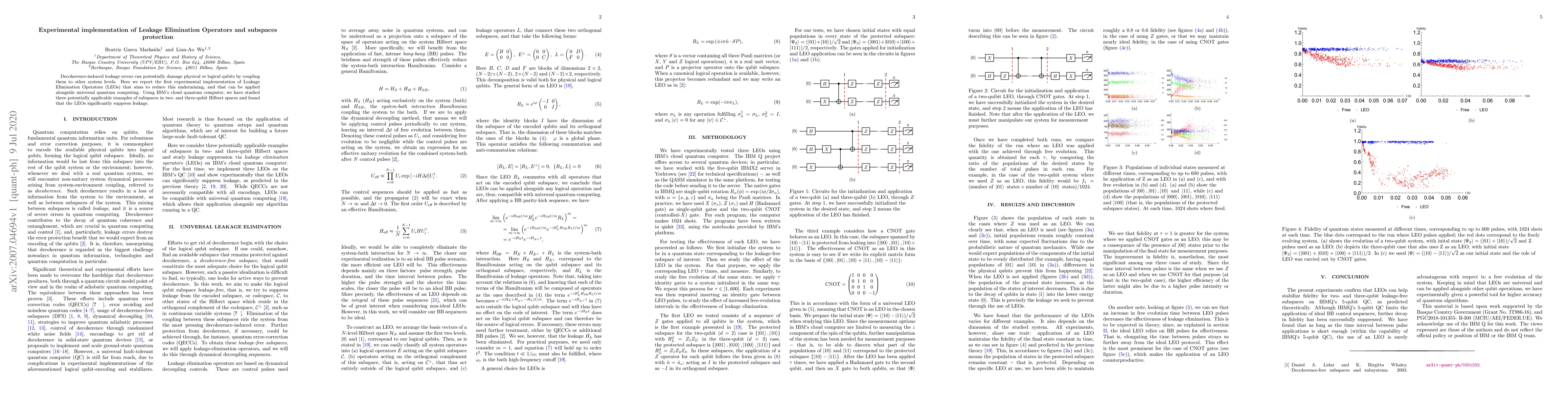Researchers successfully implemented Leakage Elimination Operators (LEOs) on IBM's cloud quantum computer to reduce decoherence-induced leakage errors in qubits, with significant suppression found for three subspaces in two- and three-qubit Hilbert spaces.