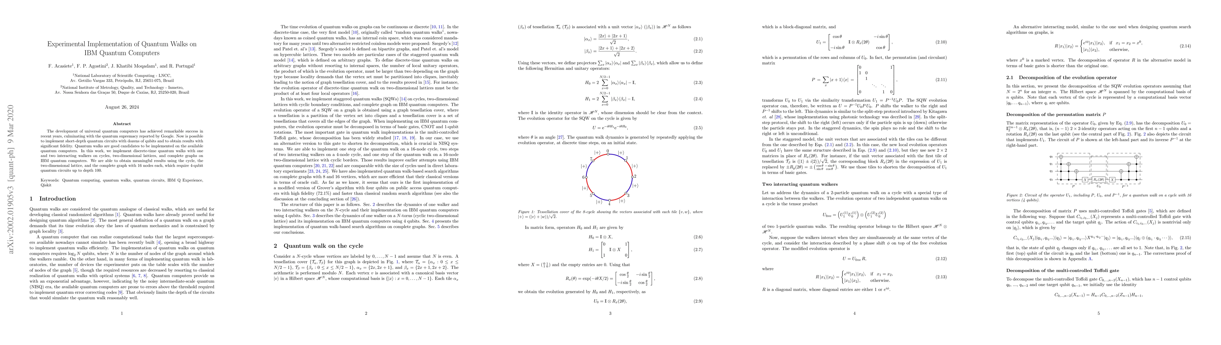 This paper details the experimental implementation of discrete-time quantum walks on IBM quantum computers, demonstrating results on cycles, two-dimensional lattices, and complete graphs with 16 nodes, using 4-qubit circuits of up to depth 100. The study showcases meaningful outcomes and highlights the potential of current quantum hardware.