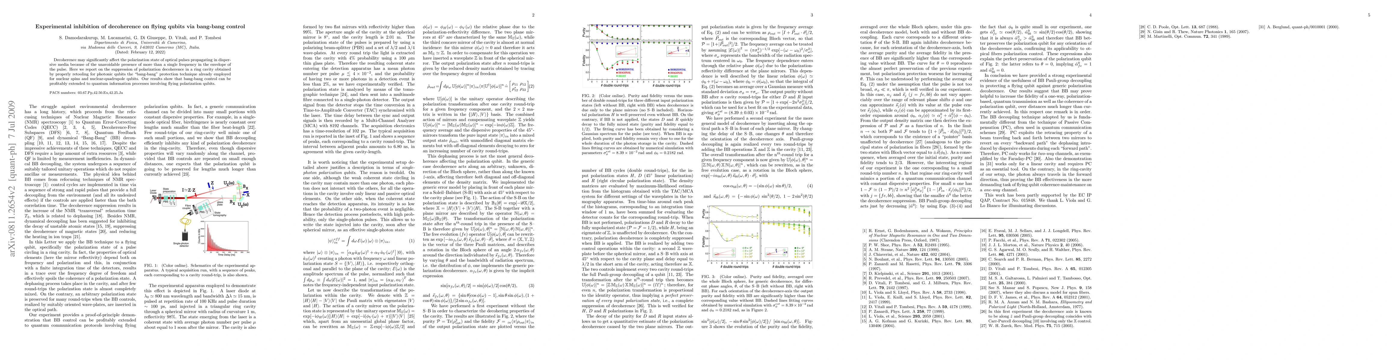 This paper demonstrates the successful suppression of polarization decoherence in optical pulses using the "bang-bang" control technique, originally developed for nuclear spins, to protect photonic qubits in a ring cavity. The results indicate that this method can effectively extend to quantum information processes involving flying qubits.