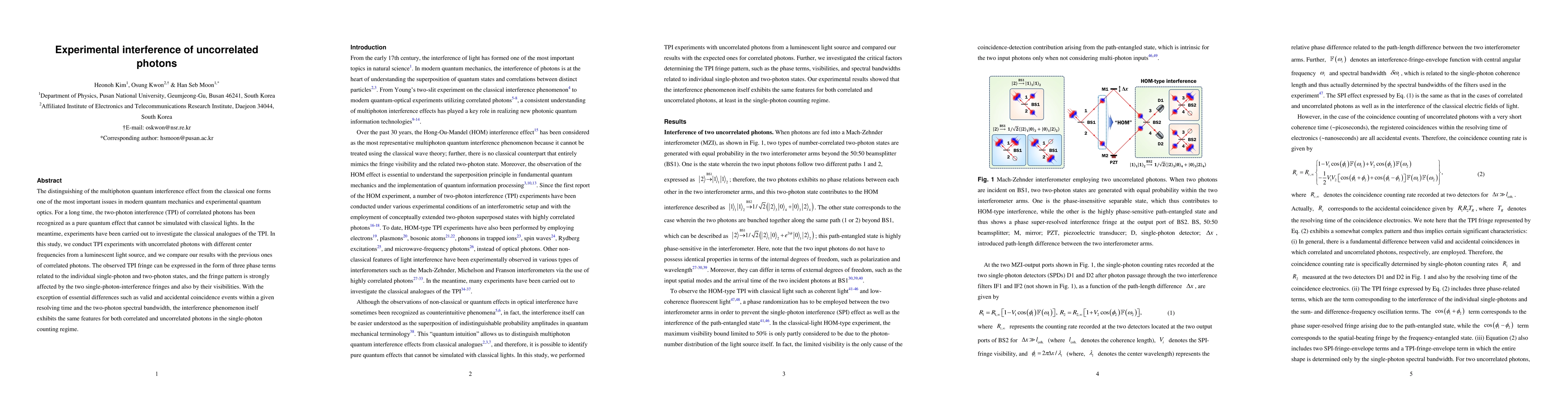 This study investigates the interference of uncorrelated photons, demonstrating that two-photon interference (TPI) exhibits similar features to that of correlated photons, despite differences in coincidence events and spectral bandwidth. The results suggest that the fundamental interference phenomenon is consistent across both types, challenging classical interpretations.