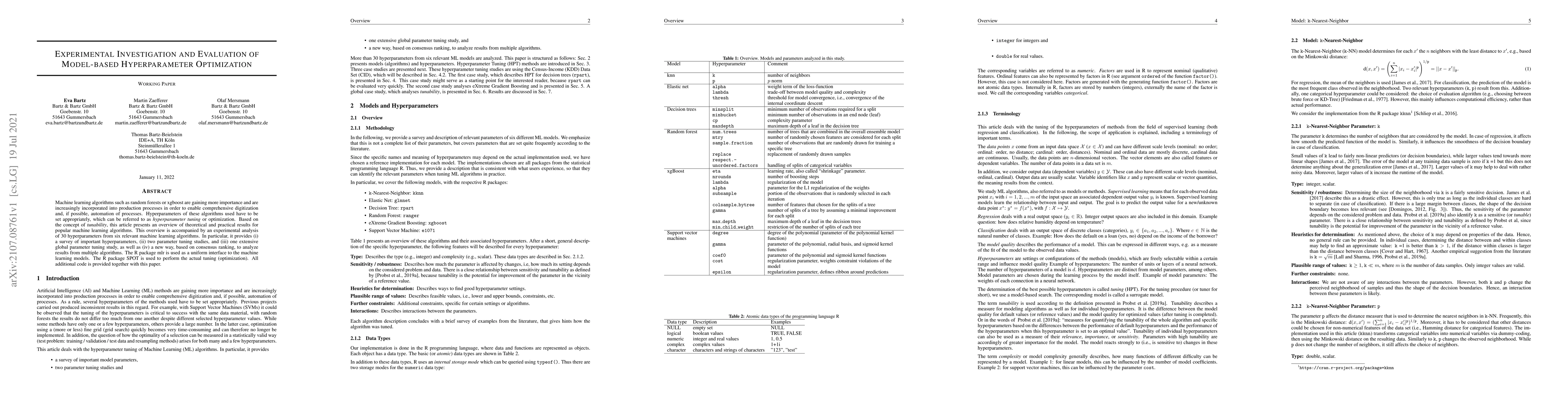 This paper investigates model-based hyperparameter optimization for machine learning algorithms, presenting an experimental analysis of 30 hyperparameters across six algorithms. It introduces a consensus ranking method to evaluate tuning results and provides comprehensive code for reproducibility.