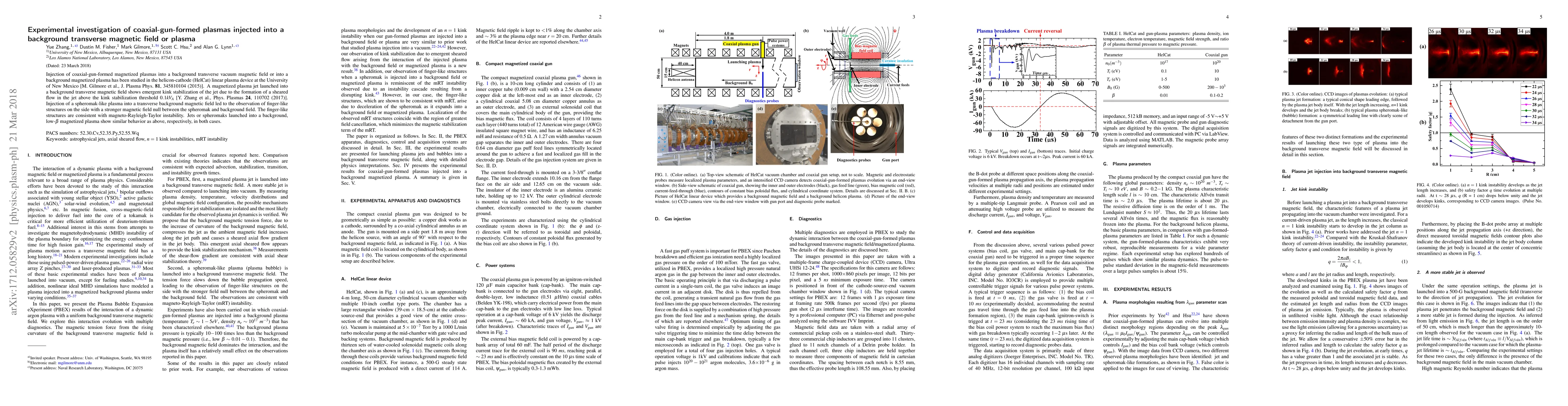 This study investigates the behavior of coaxial-gun-formed magnetized plasmas injected into either a transverse vacuum magnetic field or a background magnetized plasma, revealing emergent kink stabilization and magneto-Rayleigh-Taylor instability in different configurations. Key findings include kink stabilization above a threshold and the formation of finger-like structures due to magneto-Rayleigh-Taylor instability in plasma jets and spheromaks.