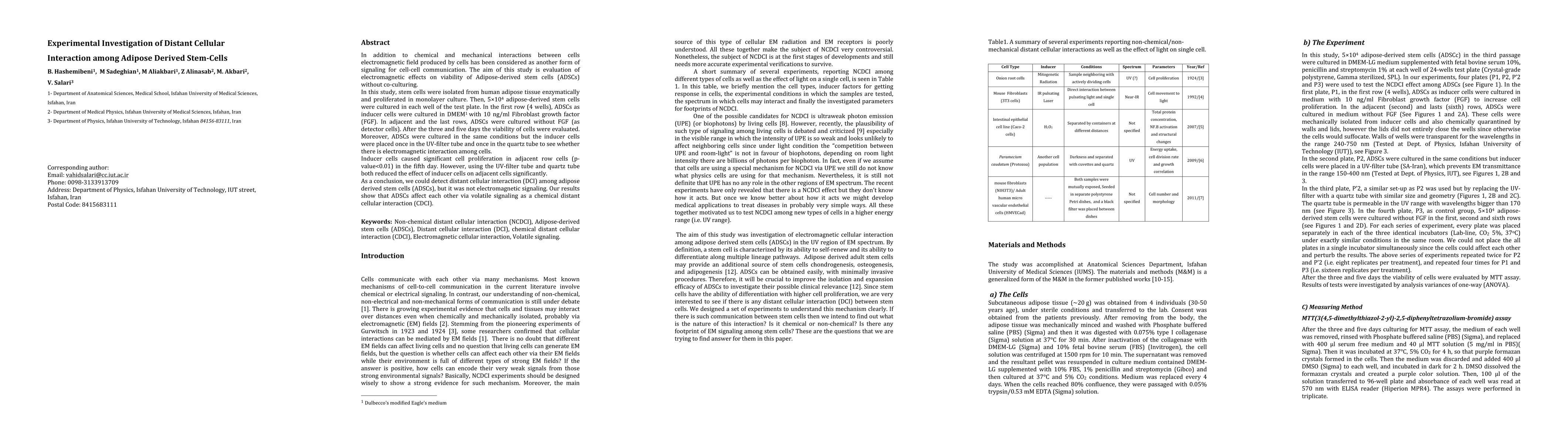 This study found that adipose-derived stem cells can interact with each other via volatile signals, not electromagnetic signals, and that these interactions can affect cell proliferation.