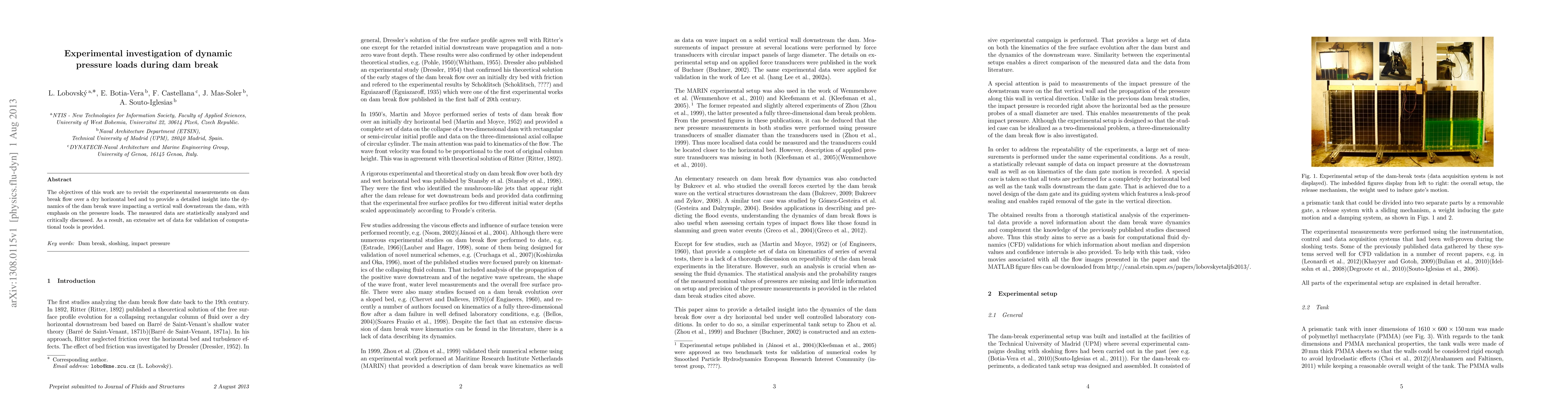 This study experimentally investigates the dynamic pressure loads generated during dam break flow impacting a vertical wall, providing detailed insights and statistical analysis. The findings offer a comprehensive dataset for validating computational models simulating such events.