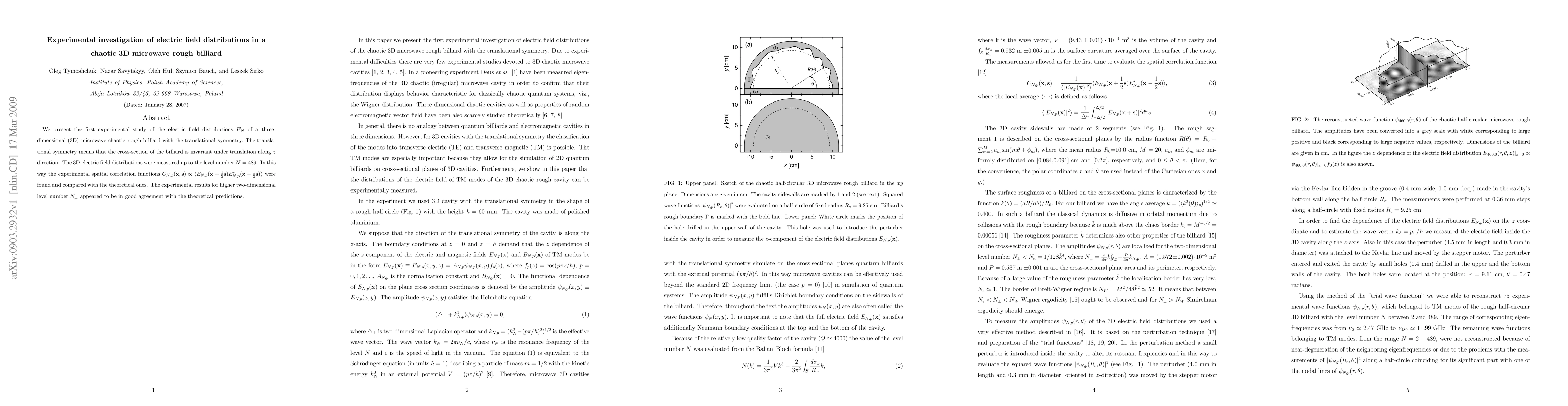 This paper reports the first experimental study of electric field distributions in a 3D microwave chaotic rough billiard with translational symmetry, measuring up to level N = 489. The experimental spatial correlation functions were found to agree well with theoretical predictions.