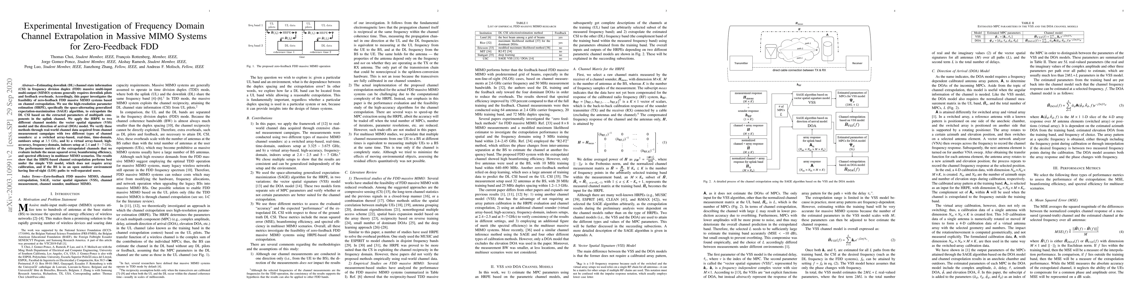 This paper investigates a new method for estimating channel state information in massive MIMO systems without feedback, using channel extrapolation based on uplink data analysis. The results show that this approach can achieve good performance in certain scenarios, particularly with simple models and outdoor environments.