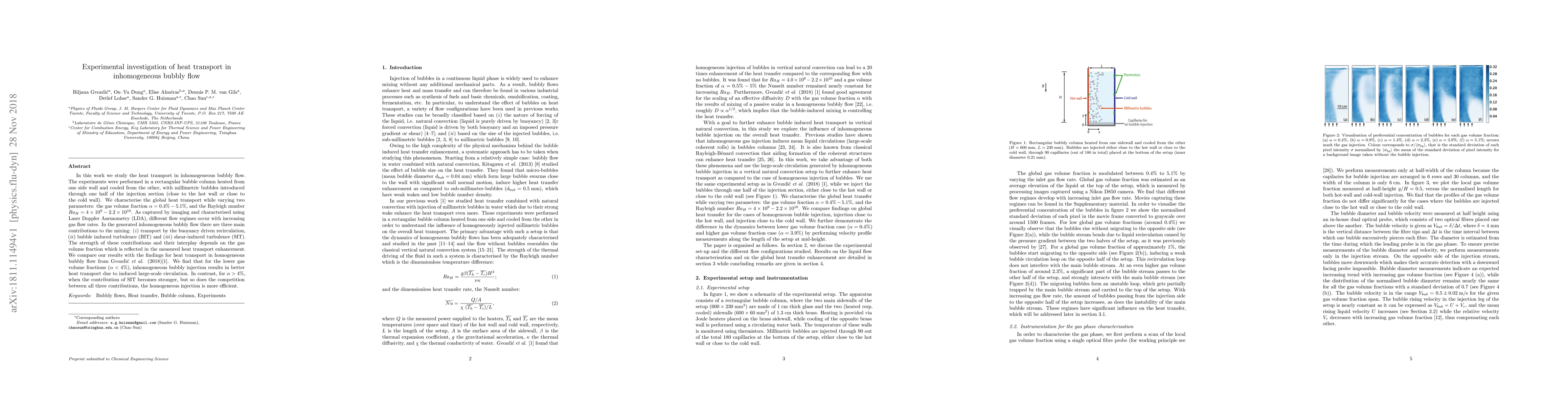 Researchers studied heat transport in bubbly flow with varying gas volume fractions and found that homogeneous injection is more efficient for low gas volumes but becomes less efficient as gas volume increases.