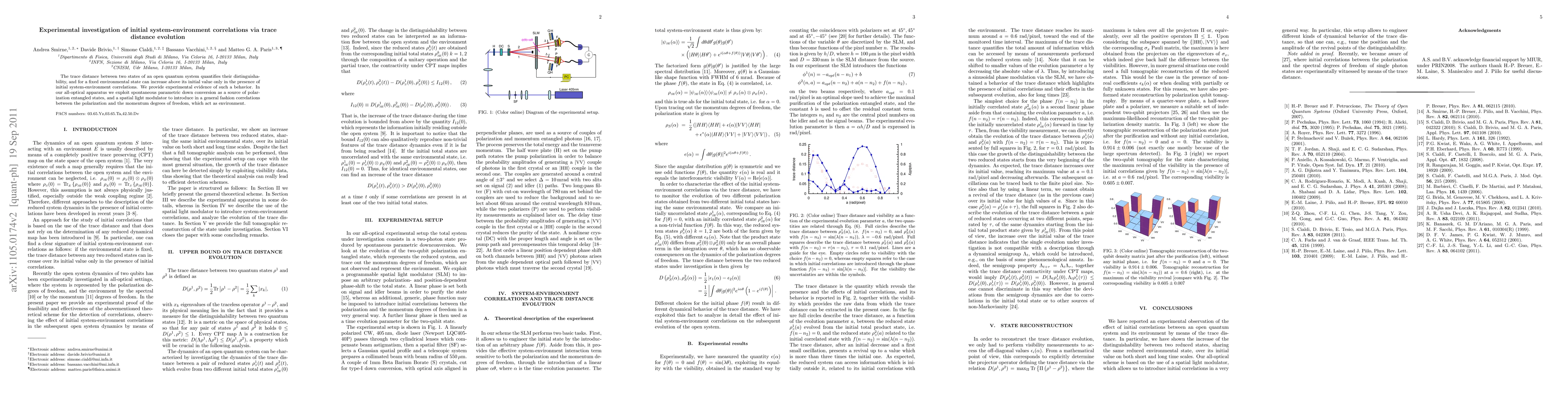 This paper experimentally demonstrates the evolution of initial system-environment correlations in an open quantum system using trace distance, showing that the distinguishability between two states can increase due to these correlations. The study employs an all-optical setup with spontaneous parametric down conversion and a spatial light modulator to create and manipulate entangled states.