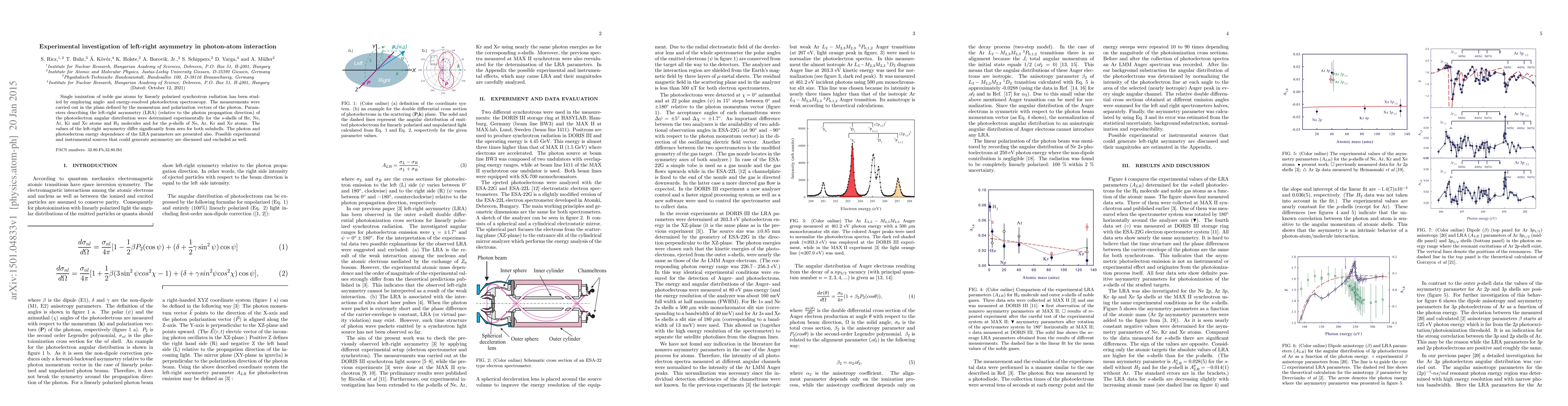 Researchers investigated left-right asymmetry in photon-atom interactions using angle-resolved photoelectron spectroscopy. They found significant differences from zero for both subshells of noble gas atoms and H2 molecules.