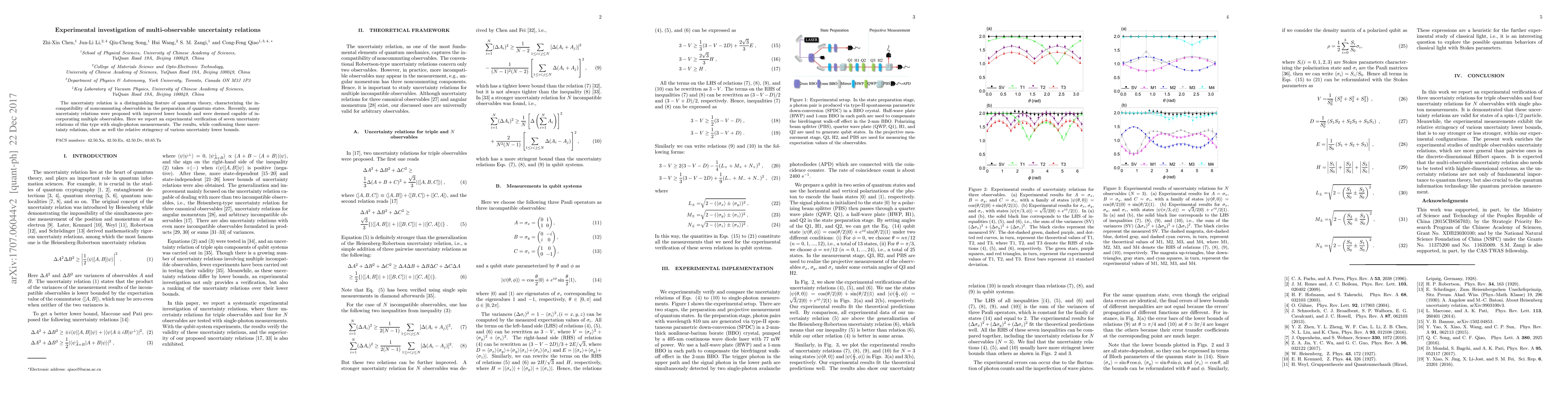 This paper experimentally verifies seven multi-observable uncertainty relations using single-photon measurements, confirming their validity and highlighting the varying stringency of the different lower bounds.