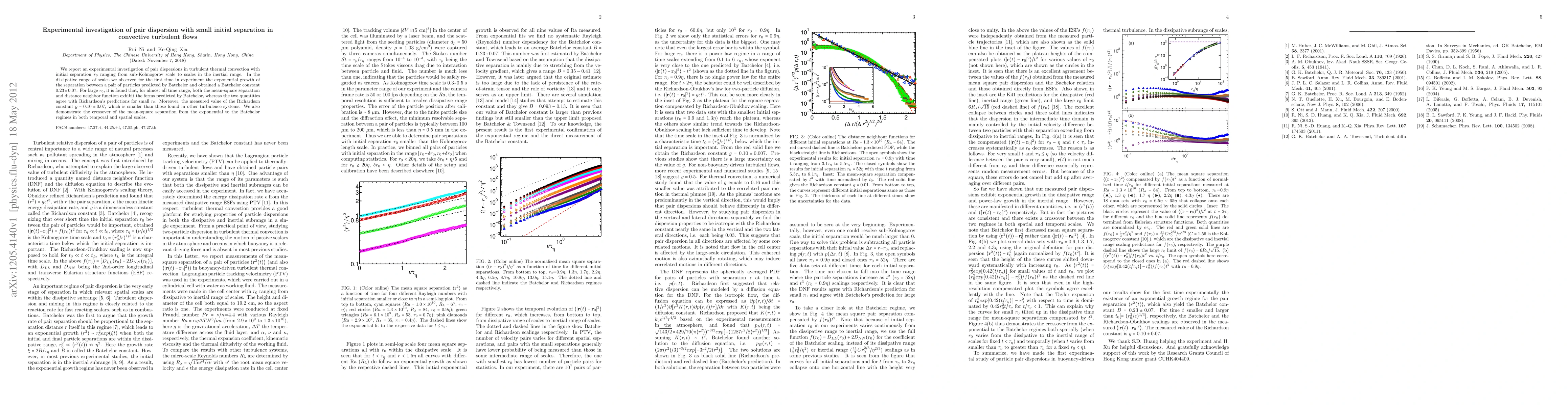 Researchers investigated particle dispersion in turbulent flows with varying initial separations, finding exponential growth of separation for small scales and Batchelor predictions for larger scales.