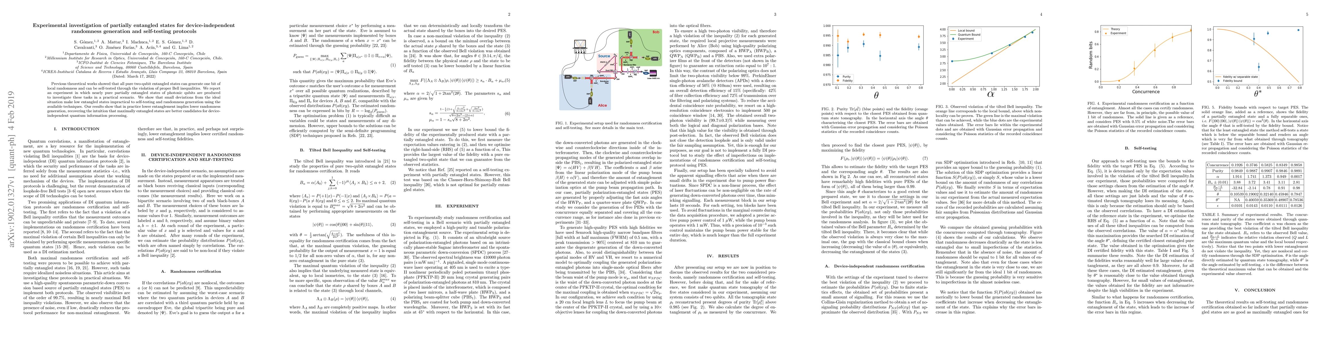 This paper experimentally investigates the use of nearly pure partially entangled photonic qubits for device-independent randomness generation and self-testing. The results demonstrate that small deviations from ideal conditions make low entangled states impractical for these tasks, reinforcing the notion that maximally entangled states are superior for quantum information processing.