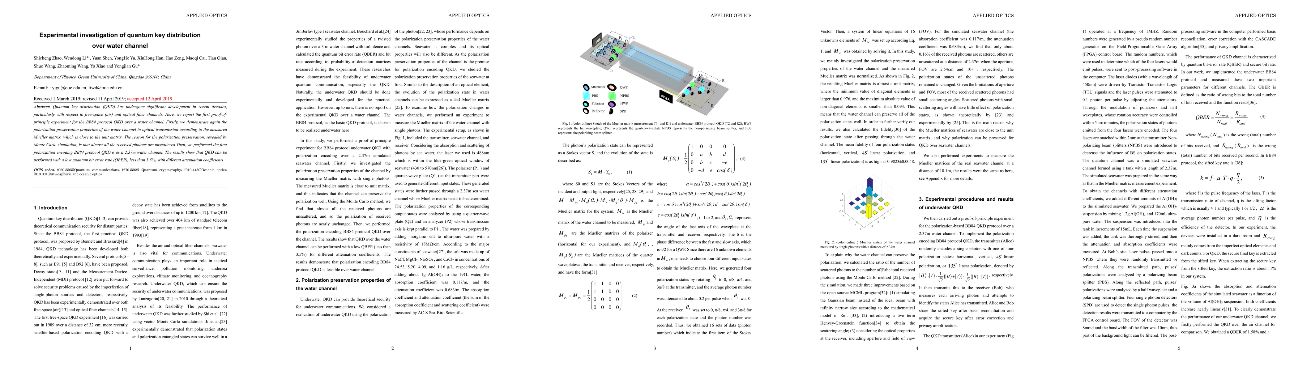 Researchers successfully transmitted quantum keys over a 2.37m water channel with an error rate of less than 3.5%, demonstrating the feasibility of quantum key distribution in aquatic environments.