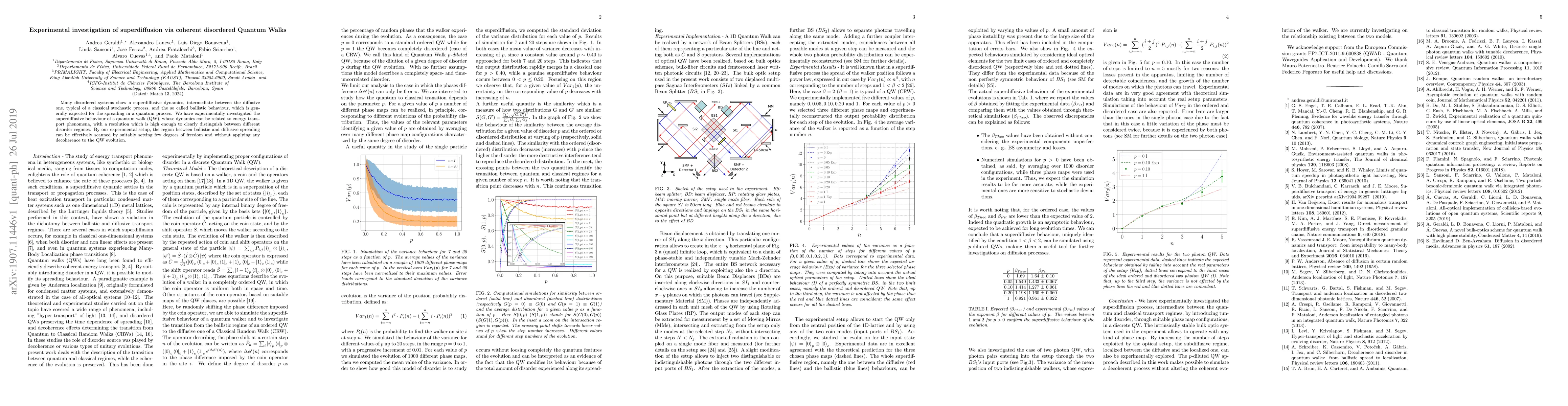 Many disordered systems show a superdiffusive dynamics, intermediate between the diffusive one, typical of a classical stochastic process, and the so called ballistic behaviour, which is generally expected for the spreading in a quantum process. We have experimentally investigated the superdiffusive behaviour of a quantum walk (QW), whose dynamics can be related to energy transport phenomena, with a resolution which is high enough to clearly distinguish between different disorder regimes. By our experimental setup, the region between ballistic and diffusive spreading can be effectively scanned by suitably setting few degrees of freedom and without applying any decoherence to the QW evolution.