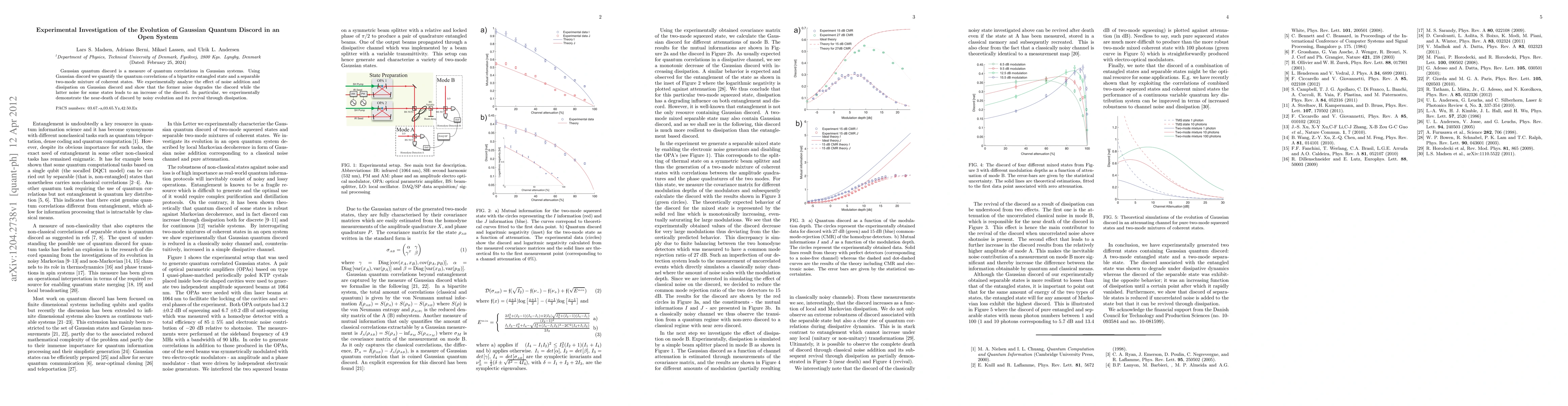 Gaussian quantum discord is a measure of quantum correlations in Gaussian systems. Using Gaussian discord we quantify the quantum correlations of a bipartite entangled state and a separable two-mode mixture of coherent states. We experimentally analyze the effect of noise addition and dissipation on Gaussian discord and show that the former noise degrades the discord while the latter noise for some states leads to an increase of the discord. In particular, we experimentally demonstrate the near-death of discord by noisy evolution and its revival through dissipation.