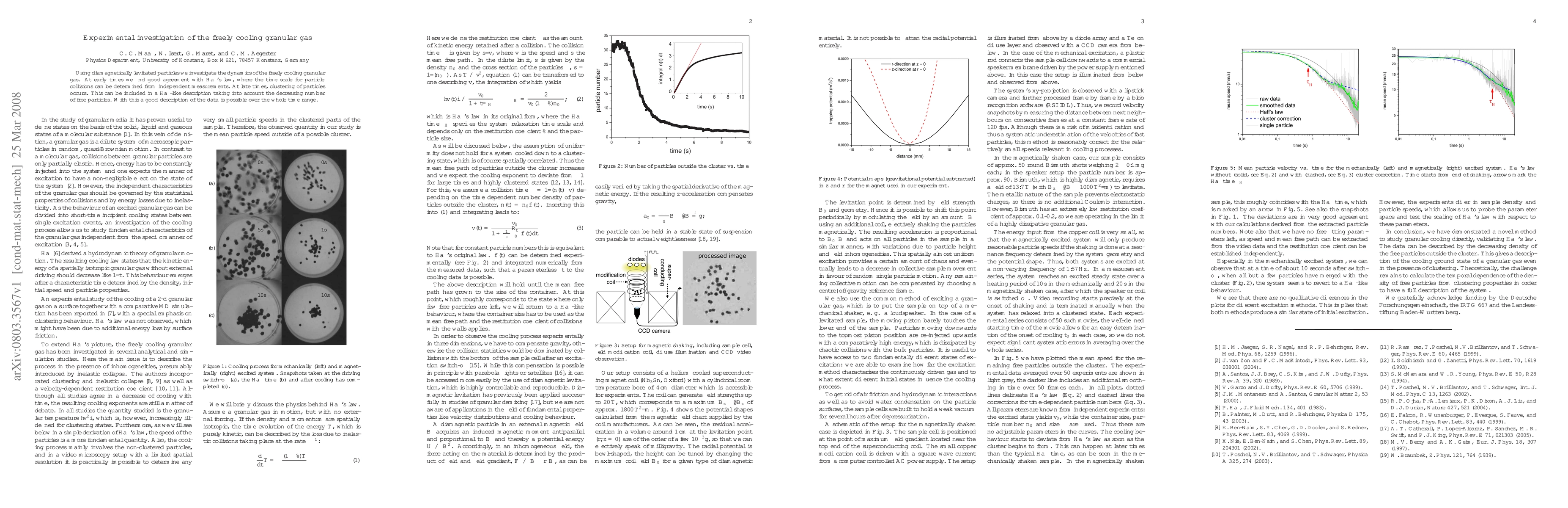 This work presents a novel approach to studying granular cooling, combining mechanical and magnetic excitation methods to validate Ha"ff's law.