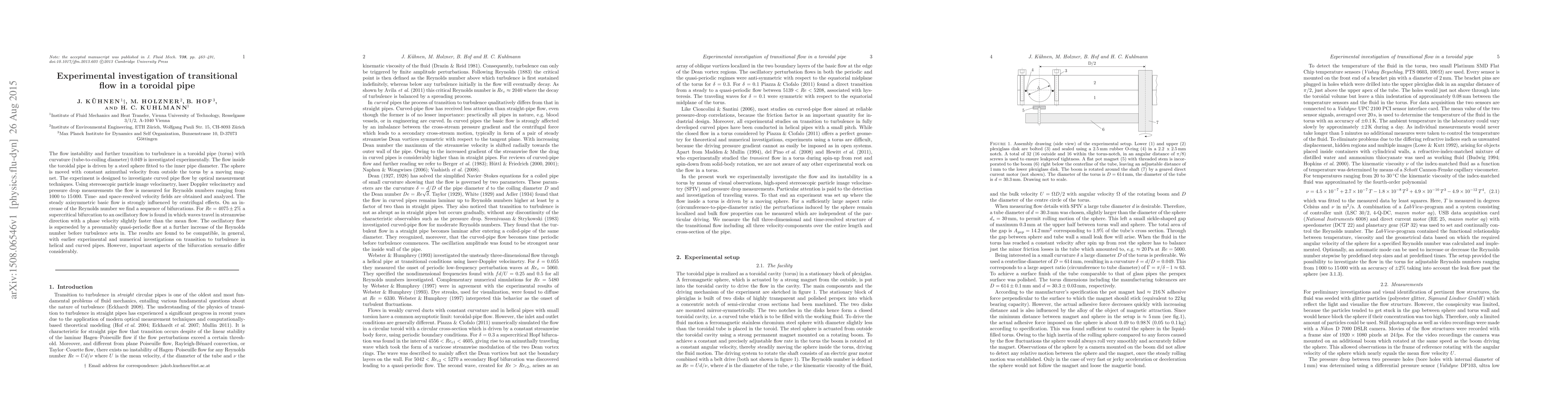 This study experimentally investigates the transition from laminar to turbulent flow in a toroidal pipe using optical measurement techniques. The results reveal a sequence of bifurcations leading to oscillatory and quasi-periodic flows before turbulence, with significant differences in the bifurcation scenario compared to previous studies.