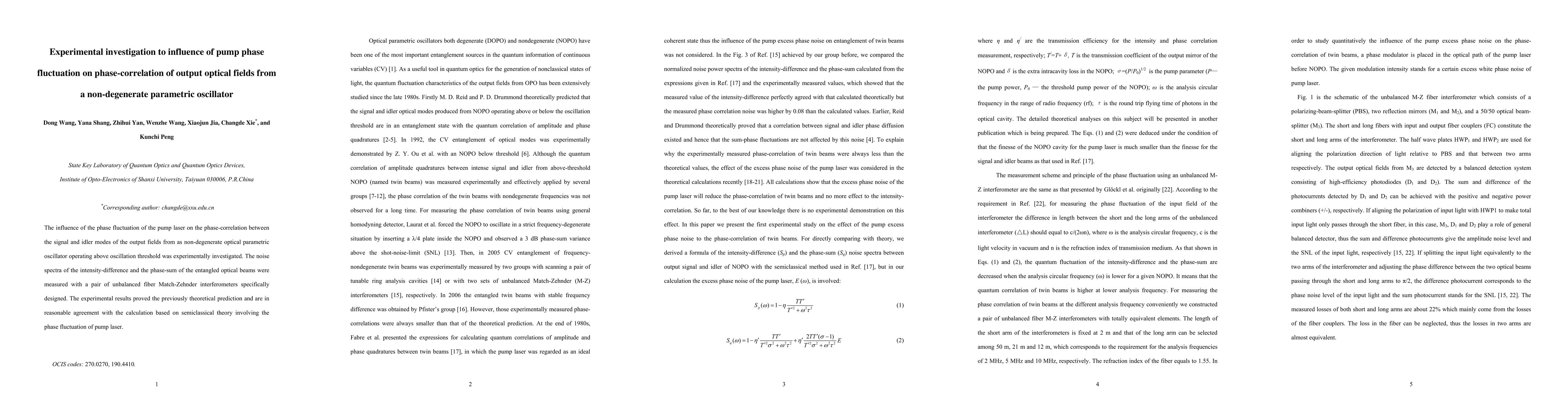 This paper investigates experimentally the effect of pump laser phase fluctuation on the phase-correlation of output optical fields from a non-degenerate optical parametric oscillator. The study confirms theoretical predictions with measurements using unbalanced fiber interferometers, showing agreement with semiclassical theory calculations.