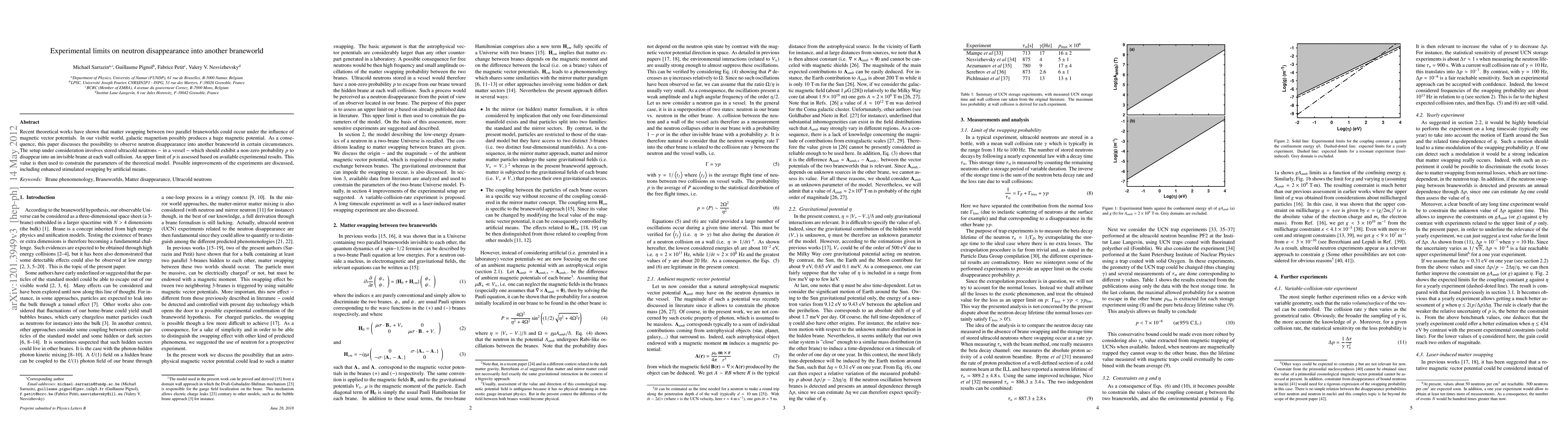 This research paper explores the theoretical concept of neutrons disappearing into another braneworld via galactic magnetism, setting an upper limit on this probability (p) using ultracold neutron experiments. It also discusses potential enhancements to future experiments for improved detection.