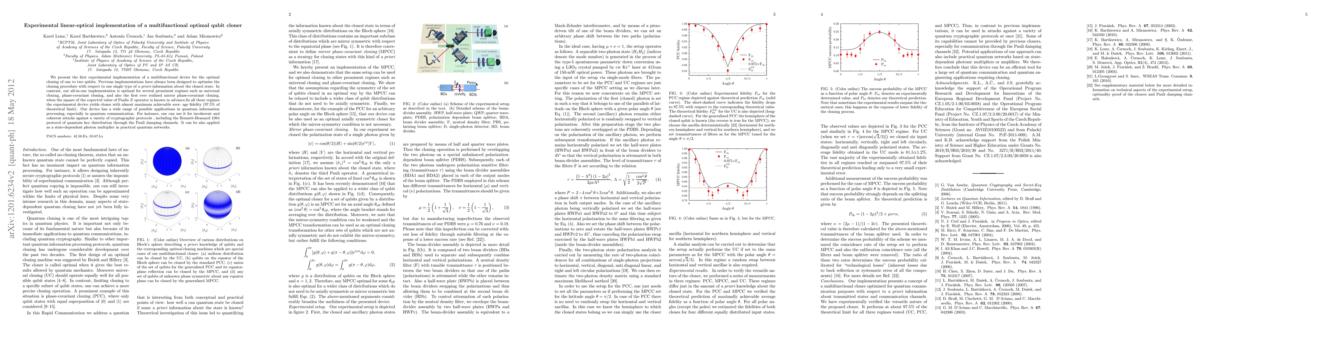 This paper reports the first experimental setup for a multifunctional optimal qubit cloner, which is optimal for various cloning regimes, achieving nearly maximum fidelity (97.5% of theoretical limit). It has potential applications in quantum communication and quantum key distribution.