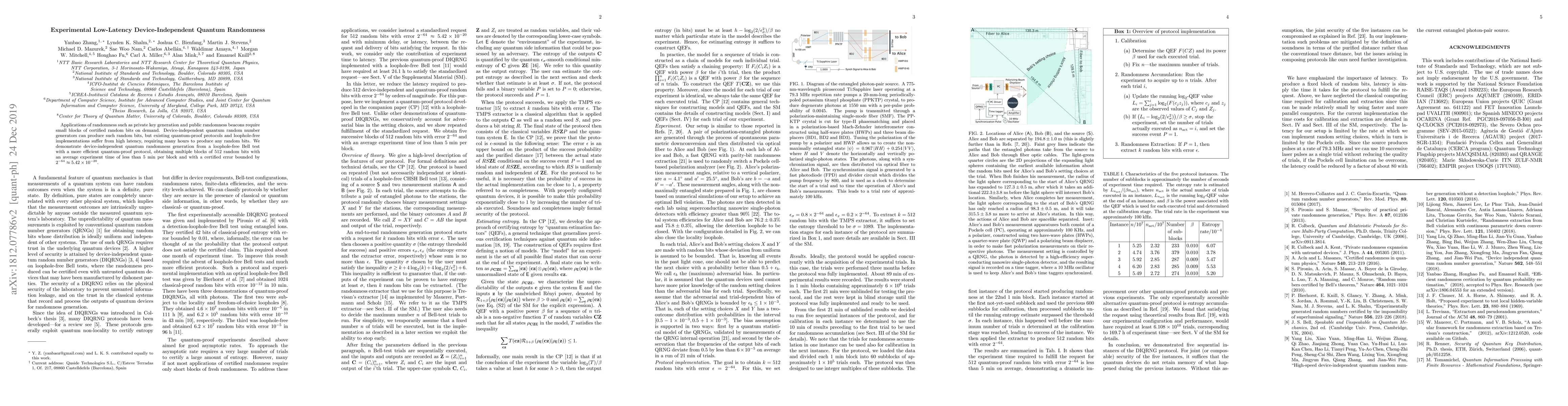 The paper presents a device-independent quantum random number generator that significantly reduces latency, producing $512$ bits per block in under $5$ minutes while maintaining a low error rate of $2^{-64}$. This efficient protocol addresses the high latency issue of previous quantum-proof randomness generation methods.