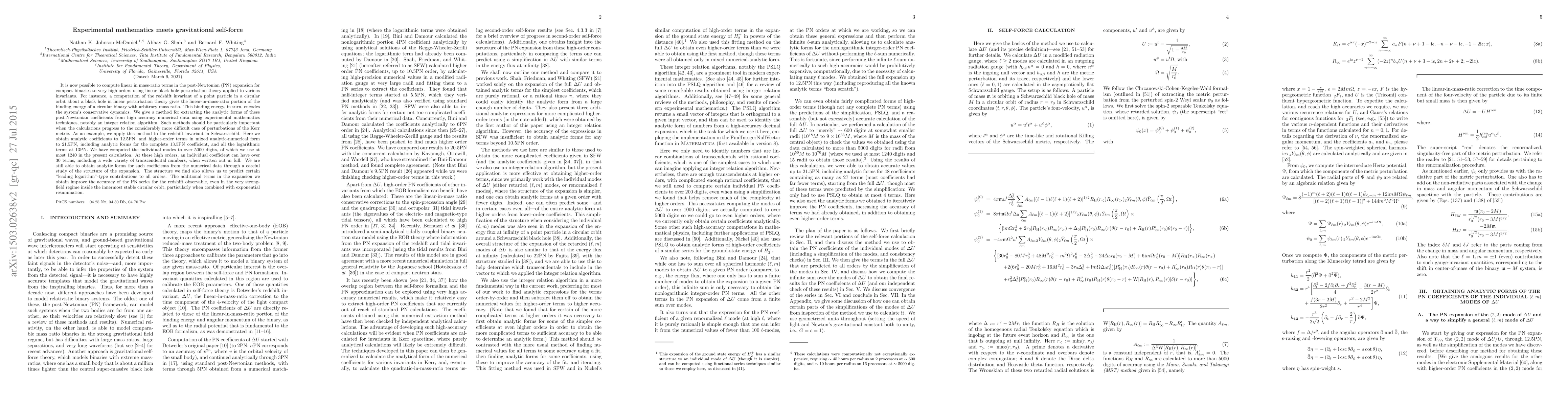 Researchers have developed a method to extract high-order coefficients for gravitational self-force calculations in compact binaries using experimental mathematics techniques, improving the accuracy of post-Newtonian series up to 21.5PN.