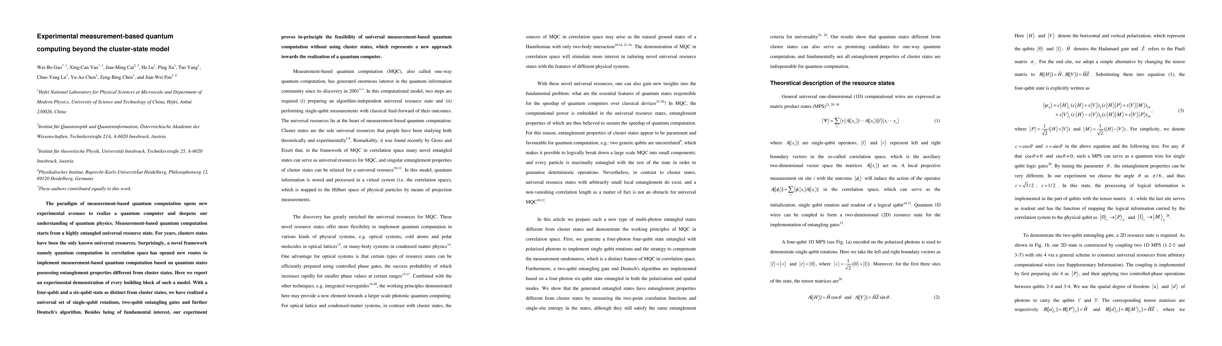 This paper demonstrates an experimental realization of measurement-based quantum computing using non-cluster states, showcasing universal quantum gates and Deutsch's algorithm with four- and six-qubit entangled states. This approach offers a new pathway for quantum computing beyond the traditional cluster-state model.