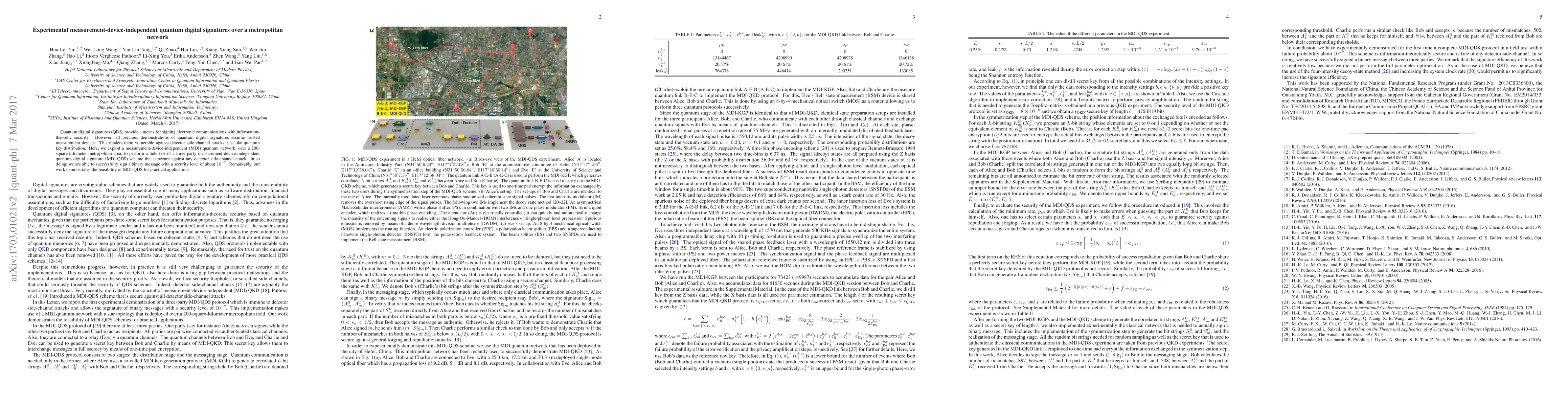 This paper presents a field test of a measurement-device-independent quantum digital signature (MDI-QDS) over a metropolitan network, achieving secure signing against detector side-channel attacks with a security level of 1E-7, demonstrating the feasibility of MDI-QDS for practical applications.