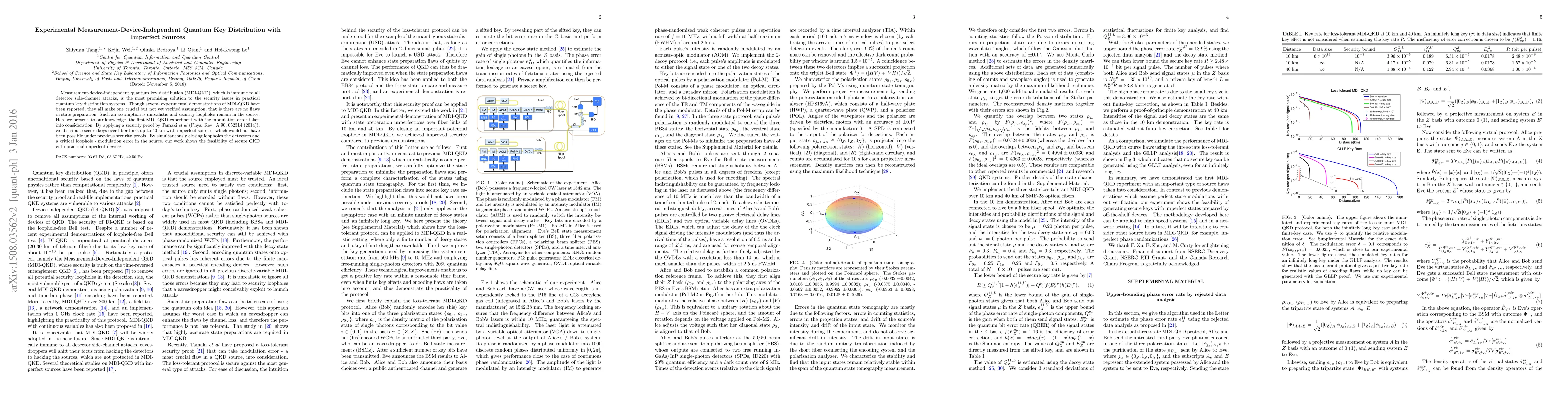 This paper presents the first experimental measurement-device-independent quantum key distribution (MDI-QKD) system that accounts for imperfections in state preparation, addressing security loopholes in the source. Using a novel security proof, it successfully distributes secure keys over fiber links up to 40 km, demonstrating the feasibility of secure QKD with practical imperfect devices.