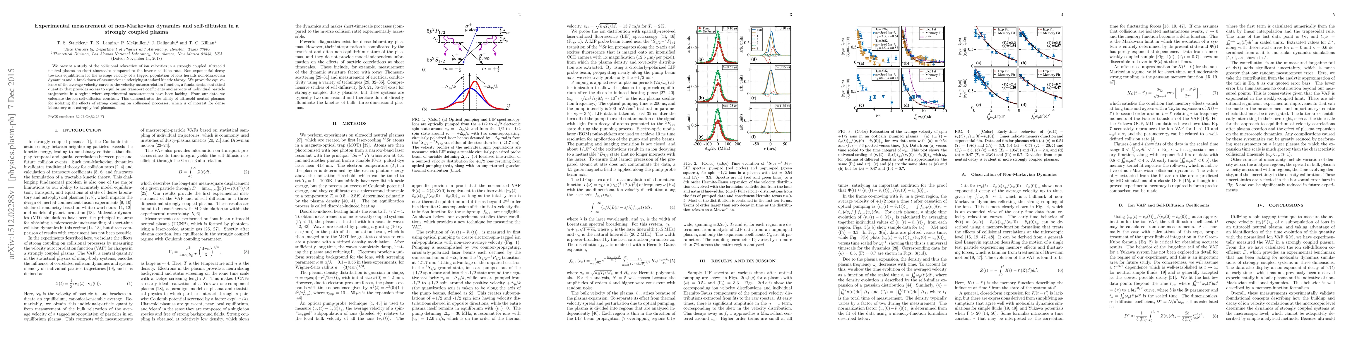 The research experimentally measures non-Markovian dynamics in a strongly coupled, ultracold neutral plasma, revealing non-exponential decay in ion velocity relaxation. It equates the average velocity curve to the velocity autocorrelation function, enabling calculation of the ion self-diffusion constant, highlighting the plasma's potential for studying strong coupling effects relevant to dense laboratory and astrophysical plasmas.