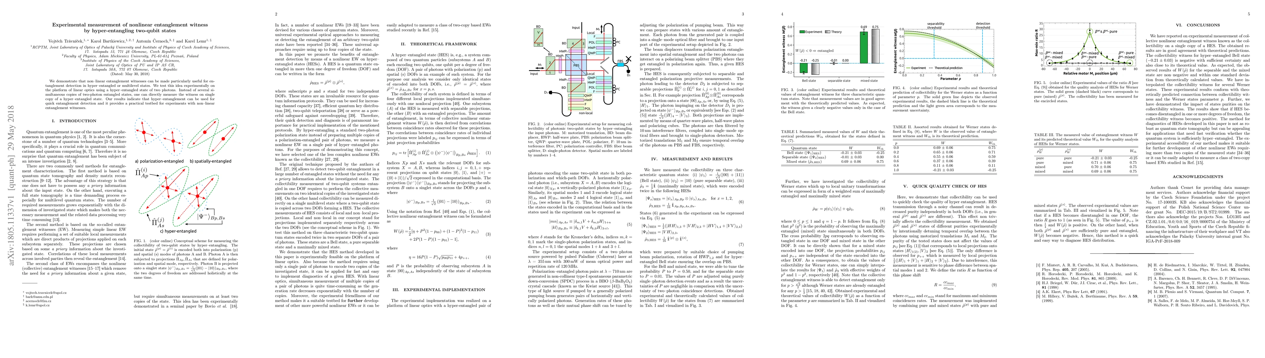This paper experimentally demonstrates the use of non-linear entanglement witnesses for detecting entanglement in hyper-entangled two-qubit states using linear optics. The study shows that a single copy of a hyper-entangled photon state can be used for quick entanglement detection, providing a practical approach for experiments with non-linear entanglement witnesses.