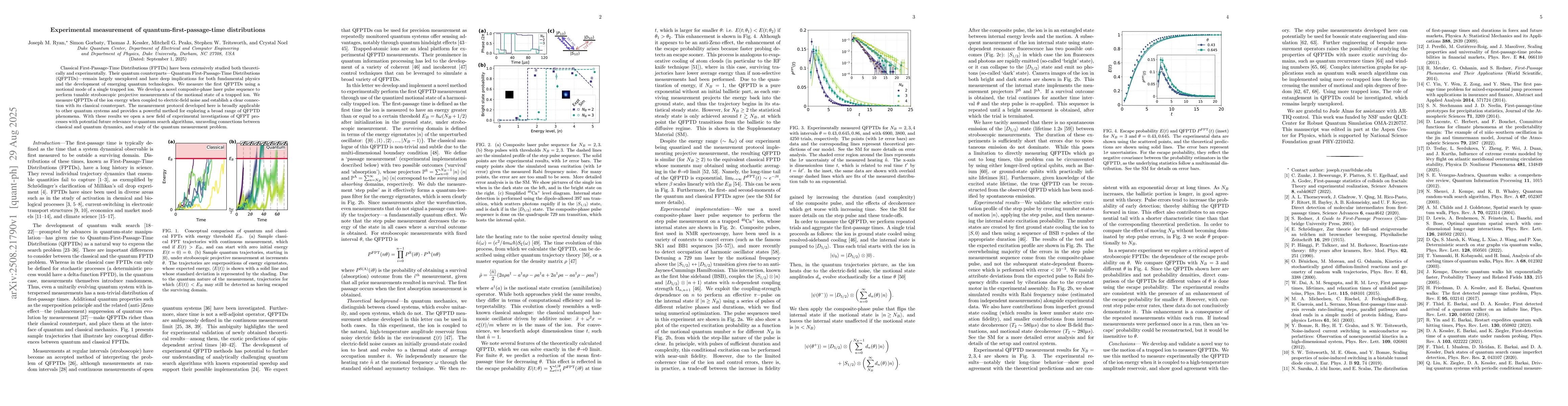 Classical First-Passage-Time Distributions (FPTDs) have been extensively studied both theoretically and experimentally. Their quantum counterparts, Quantum First-Passage-Time Distributions (QFPTDs), remain largely unexplored and have deep implications for both fundamental physics and the development of emerging quantum technologies. We measure the first QFPTDs using a motional mode of a single trapped ion. We develop a novel composite-phase laser pulse sequence to perform tunable stroboscopic projective measurements of the motional state of a trapped ion. We measure QFPTDs of the ion energy when coupled to electric-field noise and establish a clear connection with its classical counterpart. The measurement protocol developed here is broadly applicable to other quantum systems and provides a powerful method for exploring a broad range of QFPTD phenomena. With these results we open a new field of experimental investigations of QFPT processes with potential future relevance to quantum search algorithms, unraveling connections between classical and quantum dynamics, and study of the quantum measurement problem.