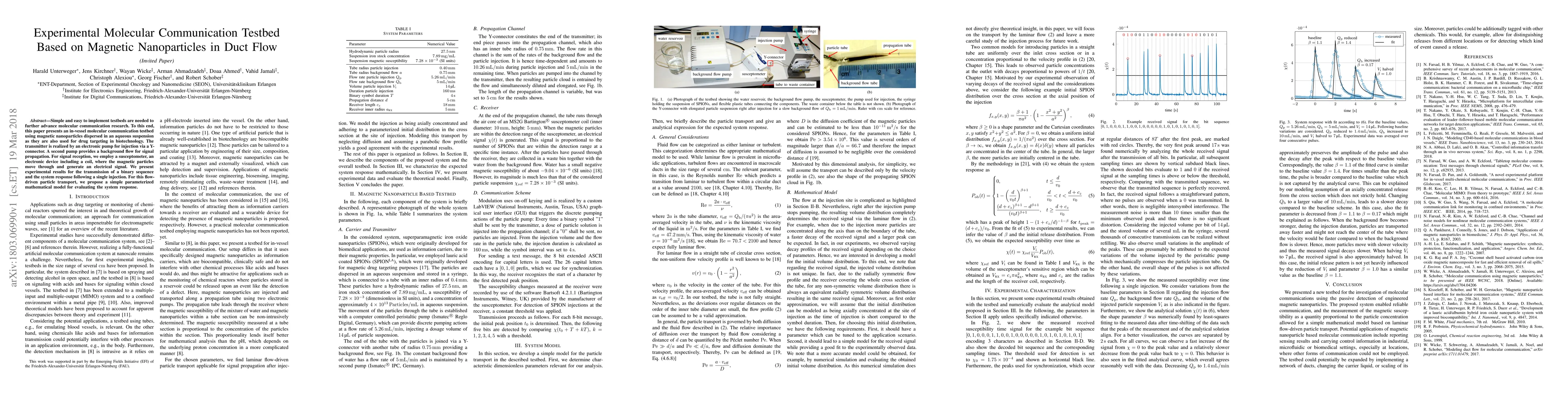 This paper introduces a practical testbed for molecular communication using magnetic nanoparticles in duct flow, employing an electronic pump for signal transmission and a susceptometer for signal reception. Experimental results demonstrate the feasibility of binary sequence transmission and a proposed mathematical model evaluates the system response.