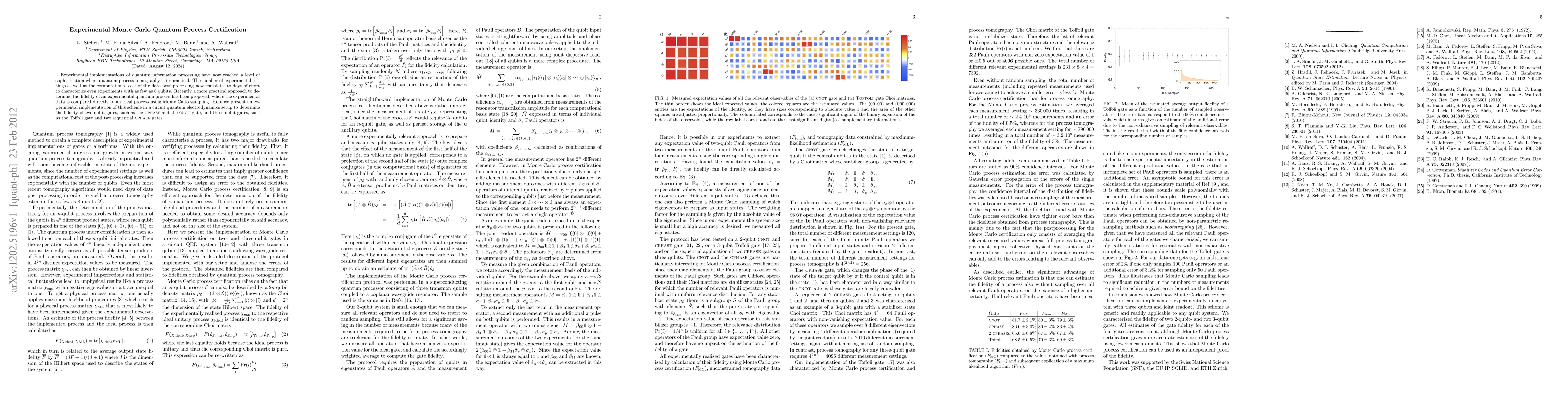 Experimental implementations of quantum information processing have now reached a level of sophistication where quantum process tomography is impractical. The number of experimental settings as well as the computational cost of the data post-processing now translates to days of effort to characterize even experiments with as few as 8 qubits. Recently a more practical approach to determine the fidelity of an experimental quantum process has been proposed, where the experimental data is compared directly to an ideal process using Monte Carlo sampling. Here we present an experimental implementation of this scheme in a circuit quantum electrodynamics setup to determine the fidelity of two qubit gates, such as the cphase and the cnot gate, and three qubit gates, such as the Toffoli gate and two sequential cphase gates.
