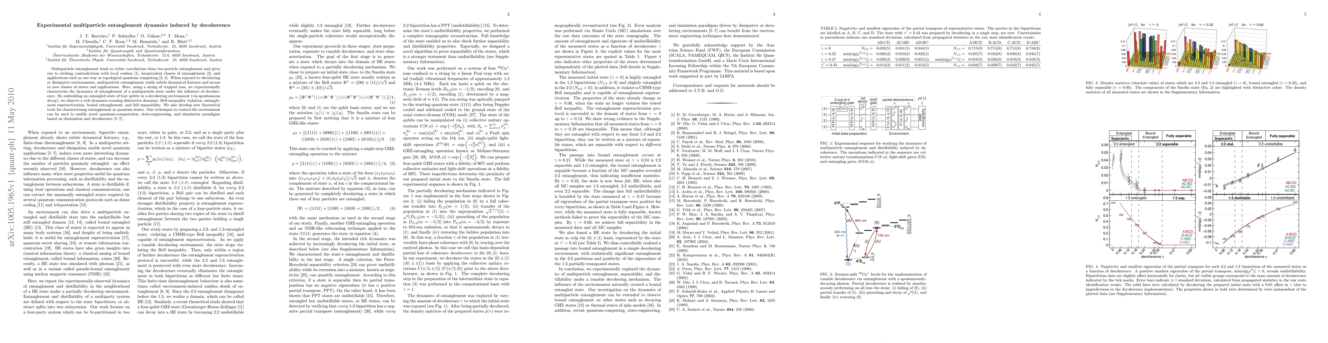 This paper experimentally investigates the dynamics of multiparticle entanglement in a system of trapped ions under decoherence, observing transitions through various entanglement states. The study develops new theoretical tools for characterizing entanglement and suggests potential applications in quantum computing and simulation.