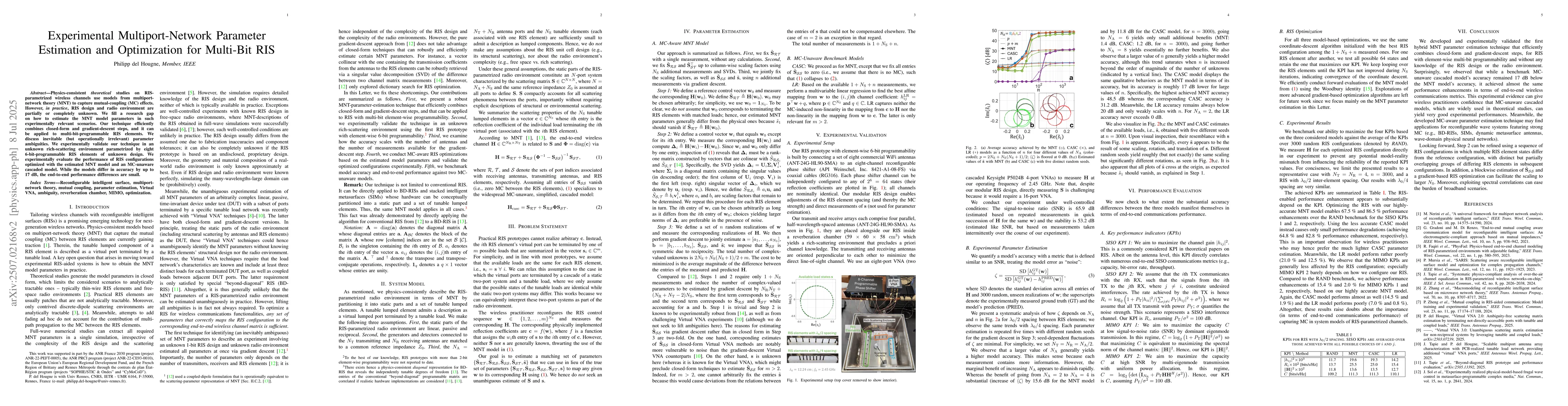 Physics-consistent theoretical studies on RIS-parametrized wireless channels use models from multiport-network theory (MNT) to capture mutual-coupling (MC) effects. However, in practice, RIS design and radio environment are partially or completely unknown. We fill a research gap on how to estimate the MNT model parameters in such experimentally relevant scenarios. Our technique efficiently combines closed-form and gradient-descent steps, and it can be applied to multi-bit-programmable RIS elements. We discuss inevitable (but operationally irrelevant) parameter ambiguities. We experimentally validate our technique in an unknown rich-scattering environment parametrized by eight 8-bit-programmable RIS elements of unknown design. We experimentally evaluate the performance of RIS configurations optimized with the estimated MNT model and an MC-unaware cascaded model. While the models differ in accuracy by up to 17 dB, the end-to-end performance differences are small.