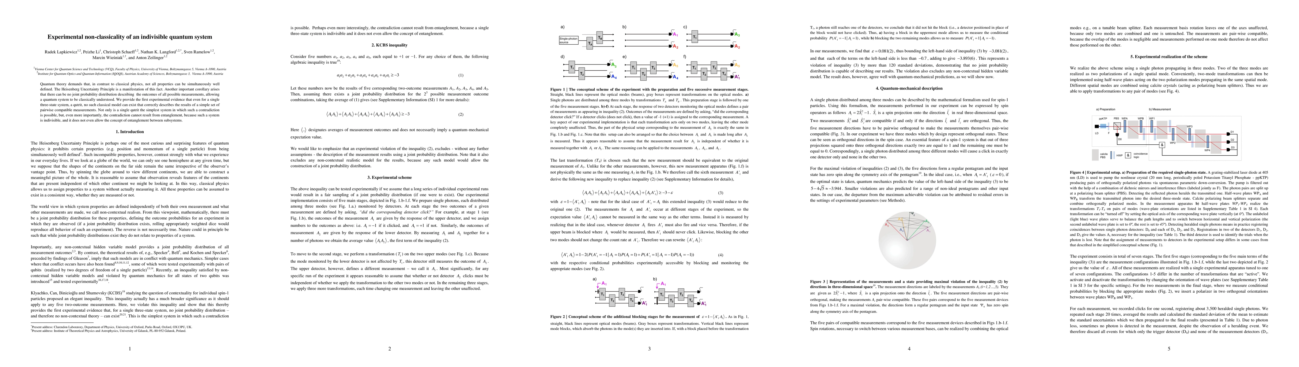 This paper experimentally demonstrates that a single three-state quantum system, or qutrit, cannot be described by classical probability distributions, highlighting the fundamental non-classicality of quantum mechanics. The results show that even the simplest indivisible quantum system contradicts classical understanding, ruling out any entanglement-based explanations.
