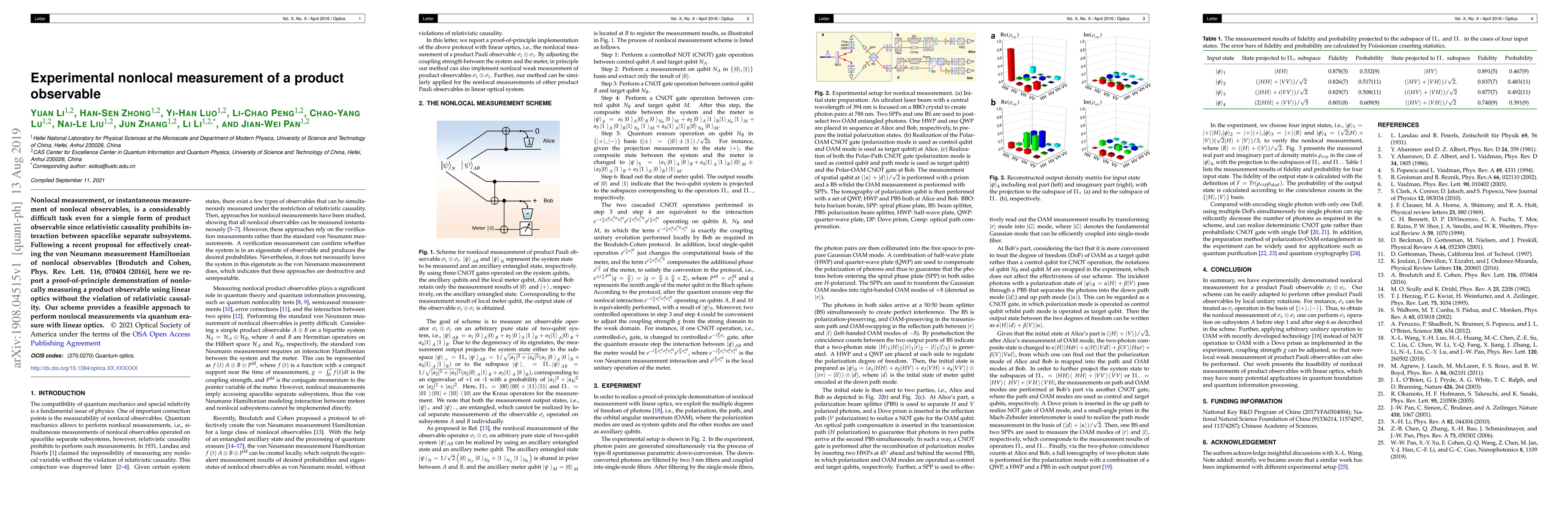 This paper demonstrates a proof-of-principle for nonlocal measurement of a product observable using linear optics, adhering to relativistic causality without violating it. The proposed method employs quantum erasure techniques to achieve this, offering a feasible approach for future nonlocal measurement applications.