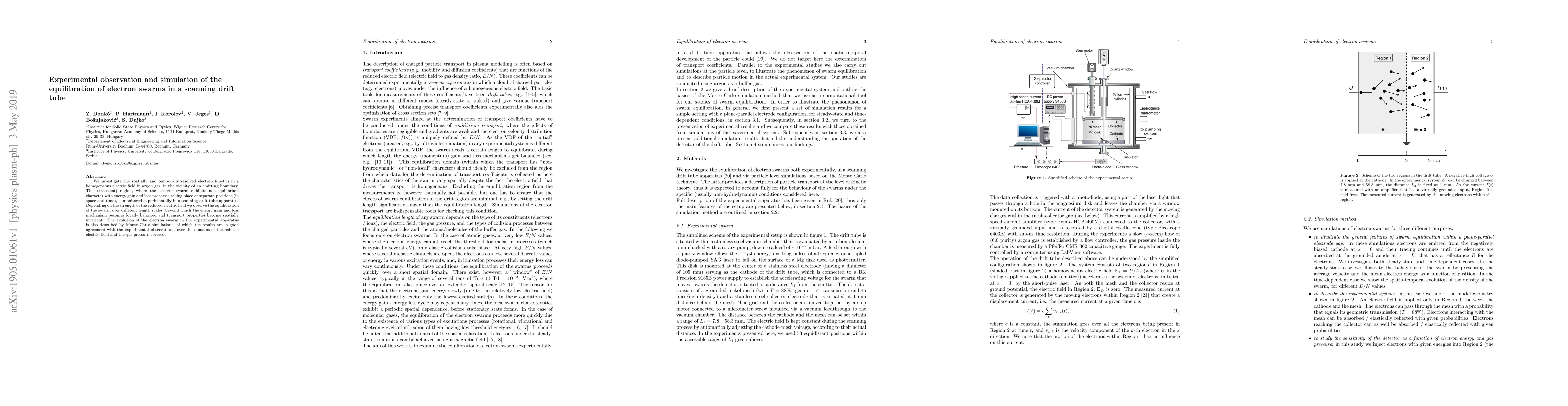 This paper investigates the equilibration of electron swarms in argon gas using a scanning drift tube, observing non-equilibrium processes in a transient region. Monte Carlo simulations match the experimental results, showing how the electron swarm equilibrates over different length scales.