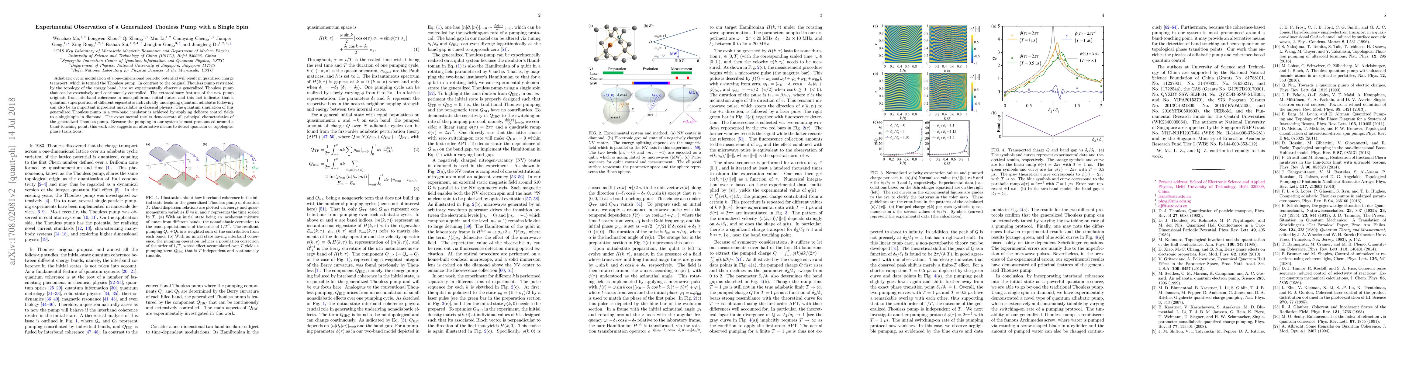 This paper experimentally demonstrates a generalized Thouless pump in a single spin in diamond, showcasing continuous control and interband coherence in nonequilibrium states. The study highlights the potential of quantum superposition in achieving quantized charge transport, offering a new method for detecting quantum or topological phase transitions.