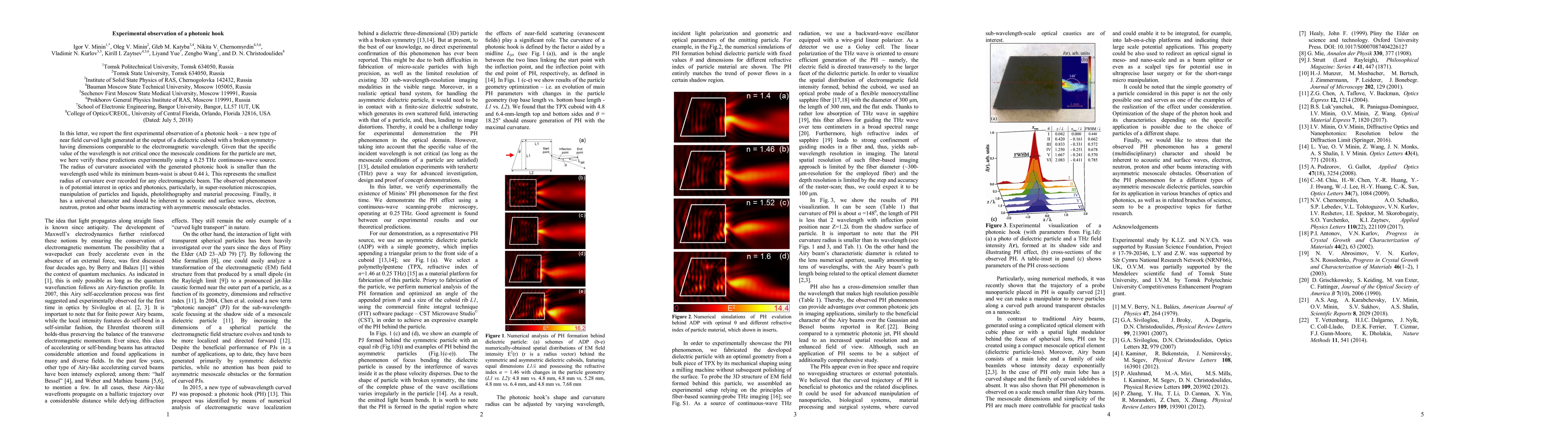 Researchers observed a photonic hook, a curved light beam generated at the output of a dielectric cuboid with broken symmetry, with a record-breaking small radius of curvature and minimum beam-waist.